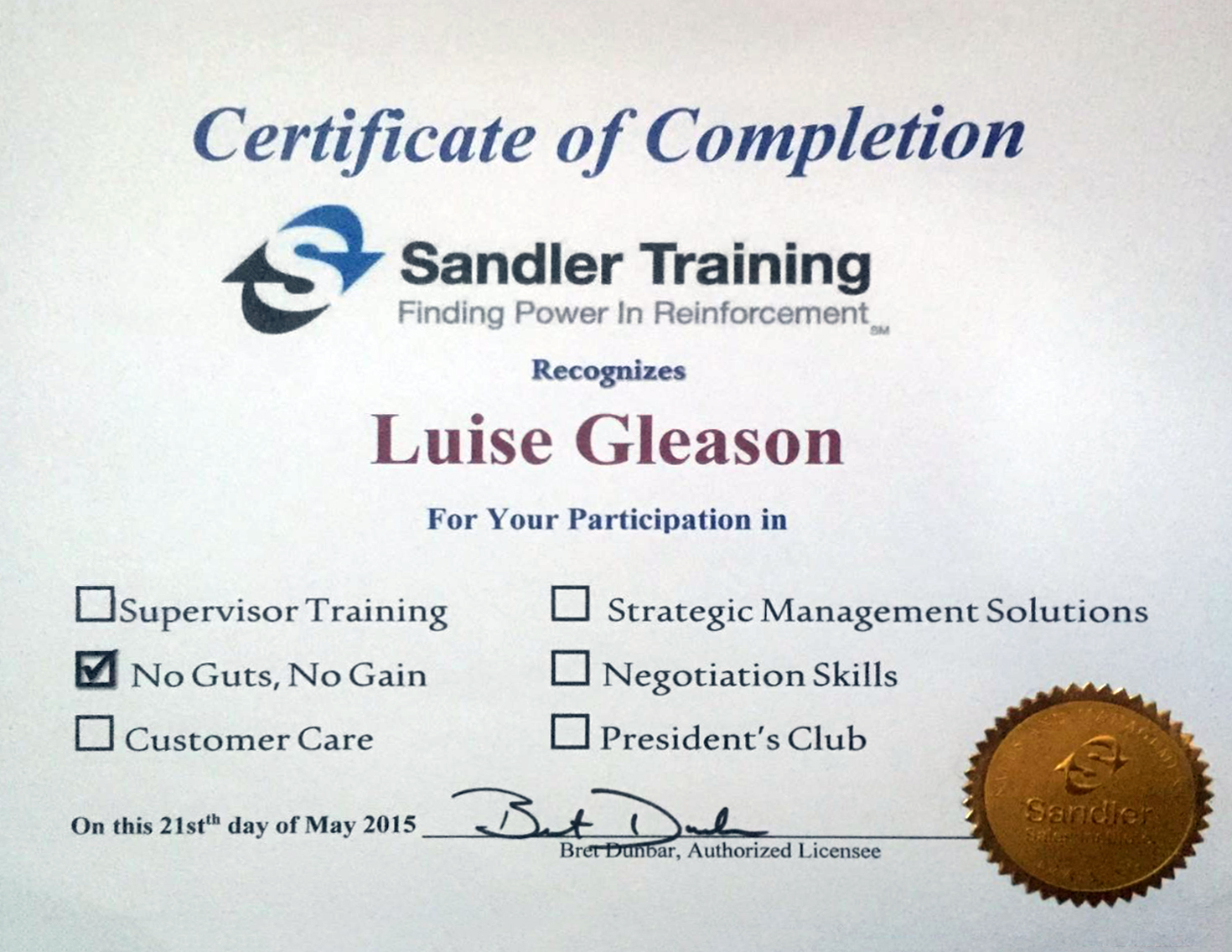 Sandler Traning “No Guts No Gain”